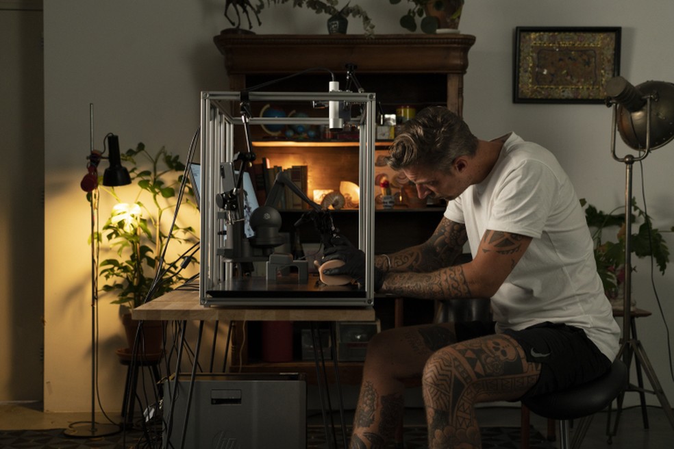 O braço robótico foi construído do zero, numa tentativa de representar ao máximo a mão de um tatuador. Diversos processos de calibragem foram feitos para que ele funcionasse em perfeita sincronia com o artista em tempo real, com testes realizados em abóboras, tomates e braços sintéticos. Entre os desafios para alcançar a perfeição estavam o ajuste de quantidade de tinta na agulha, a identificação das diferentes texturas de pele e as nuances dos traços do artista.