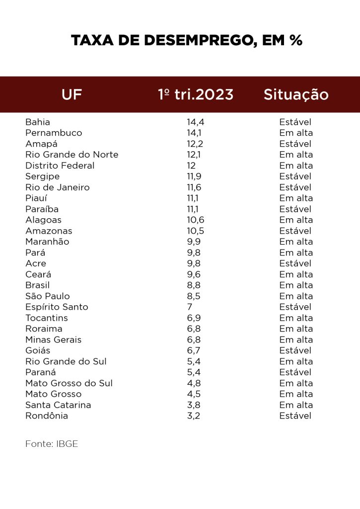Enquanto a situação é estável em Rondônia, o desemprego subiu em 16 Unidades da Federação (UF), entre janeiro e março, e a média nacional aponta para uma alta de 8,8% em todo o Brasil, em comparação com o último trimestre de 2022.