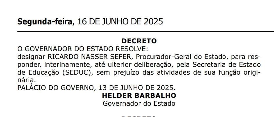 BELÉM (PA) – O gaúcho Rossieli Soares deixou oficialmente o comando da Secretaria de Estado de Educação do Pará (Seduc-PA) no último dia 13 de junho, após uma gestão marcada por críticas de professores, lideranças indígenas e comunidades tradicionais. Até que haja uma nova nomeação, o procurador-geral do Estado, Ricardo Nasser Sefer, responderá interinamente pela pasta, acumulando a função com suas atividades originais, segundo decreto publicado nesta segunda-feira, 16, no Diário Oficial do Estado (DOE).