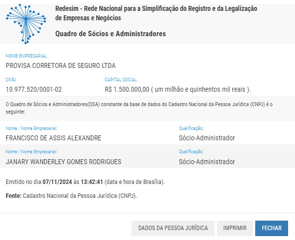 Segundo consta no site da empresa, Francisco Alexandre e Janary Rodrigues são sócios desde 2009, e ambos aparecem em materiais institucionais da Provisa. Na rede social LinkedIn, uma plataforma focada em negócios e emprego, ele se identifica como diretor-presidente da corretora.