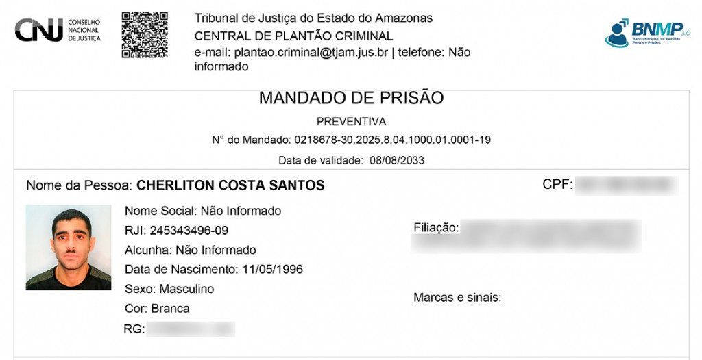 O documento que ordenou a prisão do motorista por estupro foi expedido pelo juíz Glen Hudson Paulain Machado, da Central de Plantão Criminal do Tribunal de Justiça do Amazonas (TJAM), no sábado, 9. O mandado judicial foi cumprido por agentes da Delegacia Especilizada em Crimes Contra a Mulher (DECCM) da Zona Centro-Sul três dias depois.