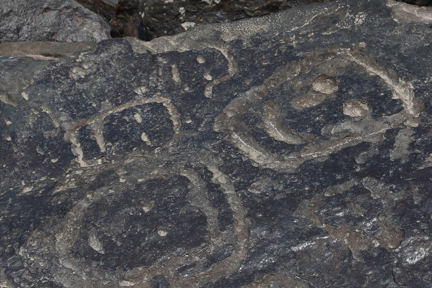 Rostos foram gravados em pedras na Ponta das Lajes. (26.out.23 – Ricardo Oliveira/Revista Cenarium Amazônia)