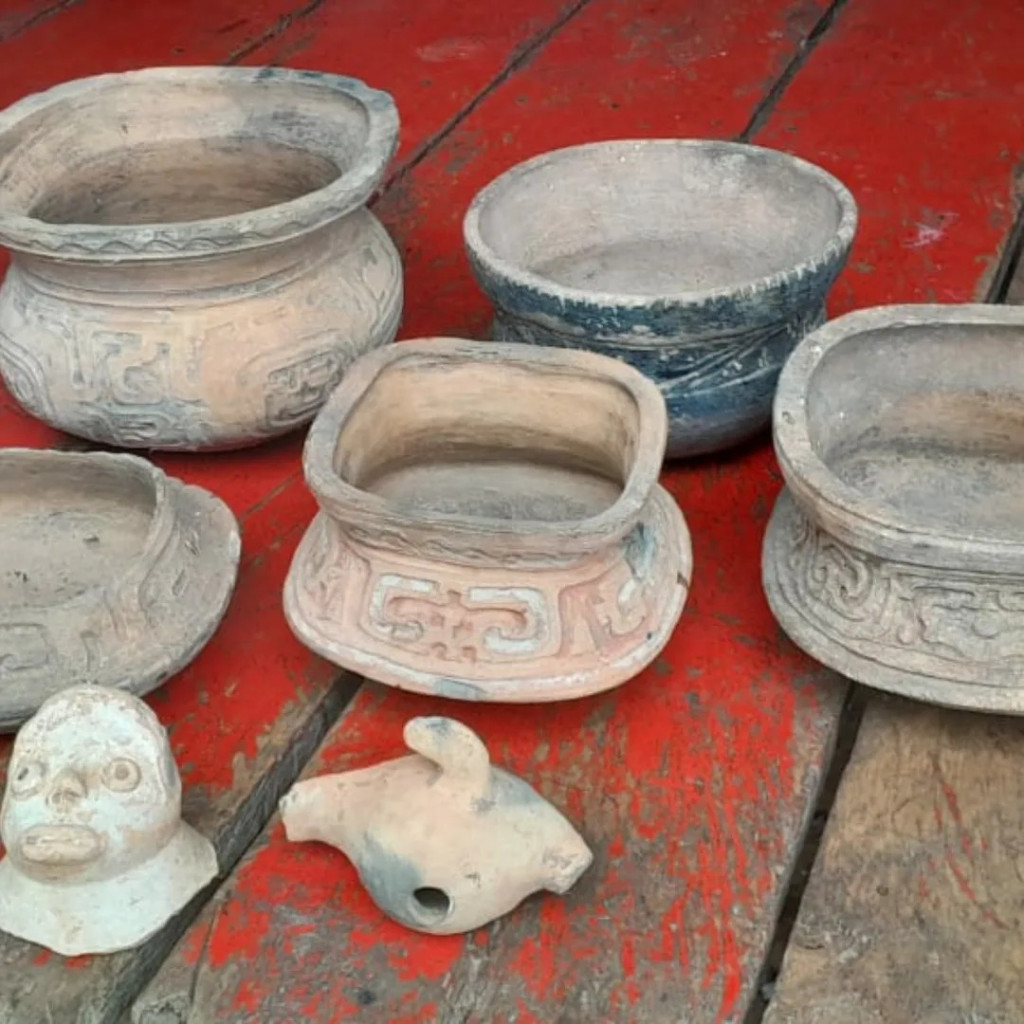 Cerâmicas encontradas em Alvarães, no Amazonas. (Reprodução/Facebook)