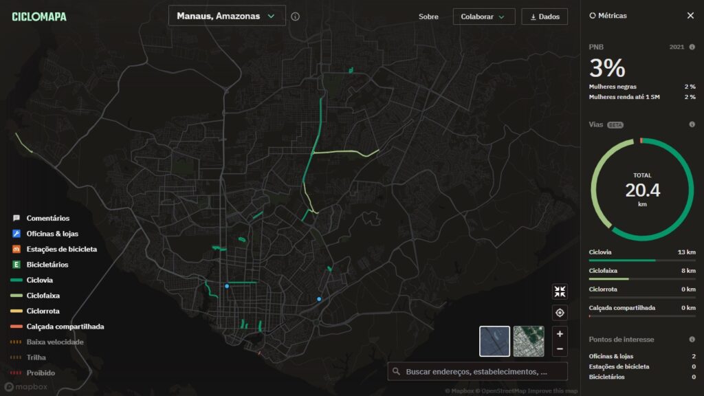 Os dados englobam todas as capitais da região Norte, mas as informações da extensão da malha viária de Macapá (AP) não foram disponibilizadas no painel. Os principais problemas avaliados para os ciclistas nas capitais, além da carência de ciclovias e ciclofaixas, são a falta de sinalização pertinente, falta de segurança e falta de campanhas educativas.