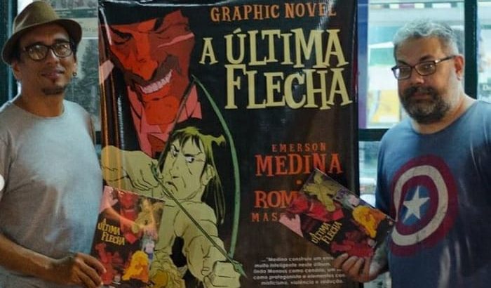 O roteirista e jornalista Emerson Medina e o desenhista Romahs Mascarenhas são os autores do quadrinho amazonense “A Última Flecha”, que retrata uma história de vingança originada a partir do extermínio de um povo indígena. A graphic novel foi selecionada como uma das 100 maiores obras da década ao entrar para o Catálogo HQ Brasil da Bienal de Curitiba, compilando os trabalhos mais relevantes produzidas no Brasil entre 2010 e 2019.