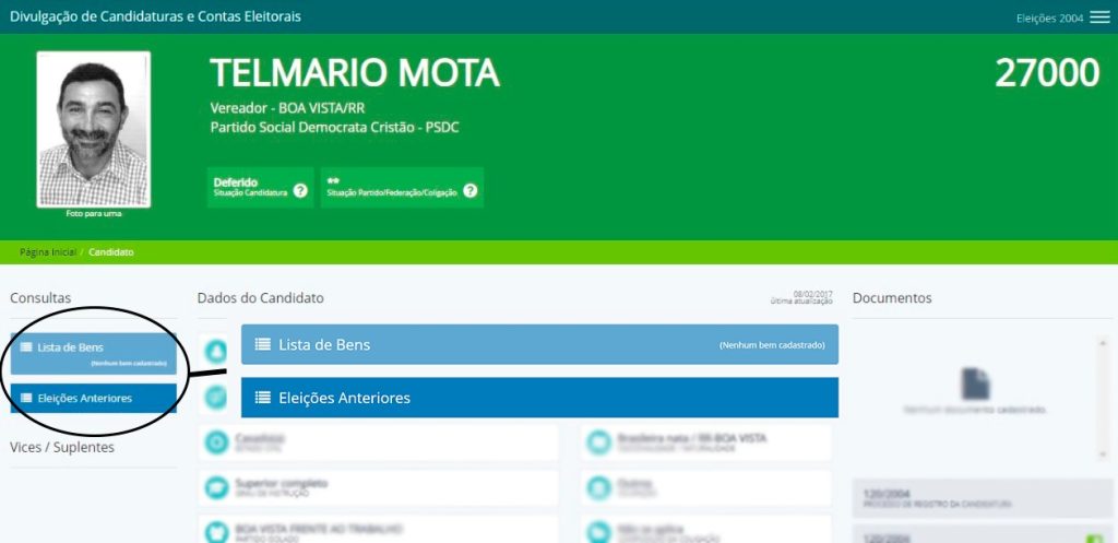 À REVISTA CENARIUM, o parlamentar e a assessoria de comunicação afirmaram que a ausência de bens declarados, em 2004, se deve a um problema no site do TSE, pois o senador já possuía e declarou patrimônio na época. A reportagem questionou o tribunal sobre o erro, mas não obteve retorno até a publicação desta matéria.