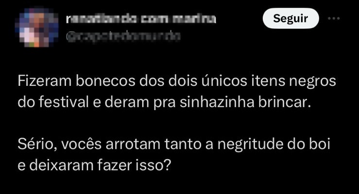 Leia também: Jurados confirmam apropriação cultural de sinhazinha em Festival de Parintins