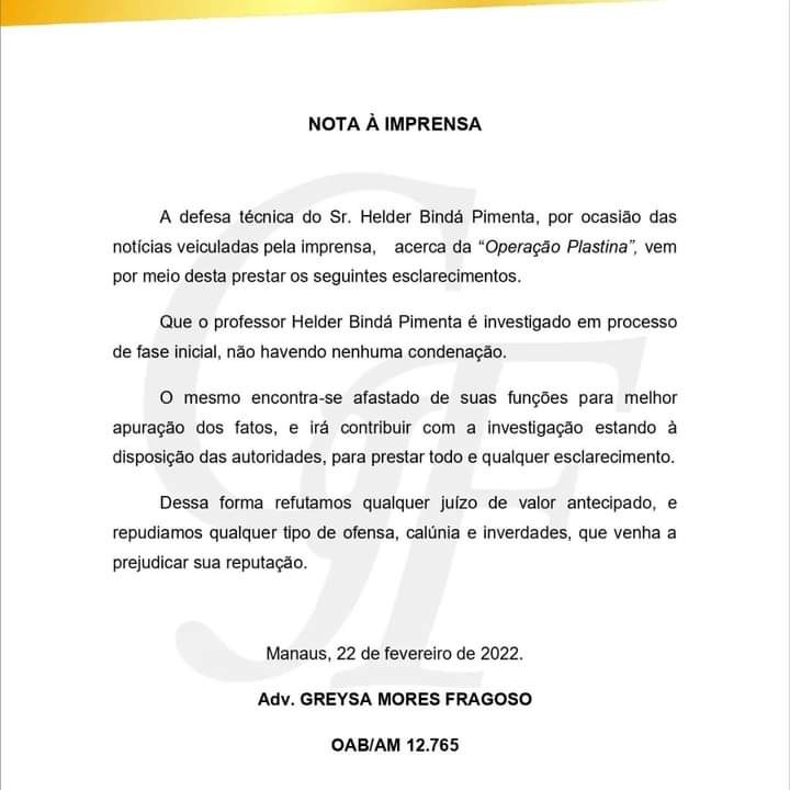 Em nota, a defesa técnica do professor afirma que ele é investigado em processo de fase inicial, não havendo nenhuma condenação. A defesa também confirma o afastamento do profissional e ressalta que o mesmo “irá contribuir com a investigação estando à disposição das autoridades para prestar qualquer esclarecimento”.