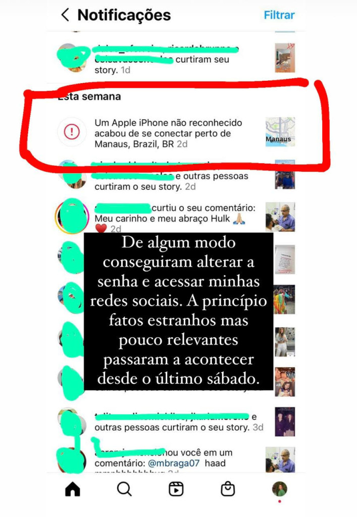 Em contato com a REVISTA CENARIUM nesta segunda-feira, Martha relatou que sofreu invasões em seu perfil na rede social e fez um post informando o caso. “De algum modo, conseguiram alterar minha senha e acessar minhas contas, mas providências estão sendo tomadas”.
