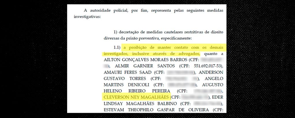 Cleverson Ney Magalhães é citado 16 vezes na petição que consta no Supremo Tribunal Federal (STF). Foram cumpridos contra o subcomandante medidas cautelares e mandados de busca e apreensão de armas, munições, computadores, tablets, celulares e outros dispositivos eletrônicos na casa do investigado.