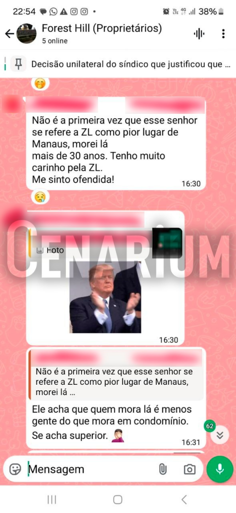Os moradores do residencial reagiram à declaração e apontaram racismo do servidor público. Uma pessoa, não identificada, afirmou que não é a primeira vez que o síndico se refere aos moradores de bairros periféricos como o “pior lugar de Manaus”. Em uma mensagem, encaminhada às 16h30 de um dia que não é possível identificar, a pessoa diz que se sentiu ofendida com a fala, por ter morado mais de três décadas em um bairro da Zona Leste da capital. Veja captura de tela: