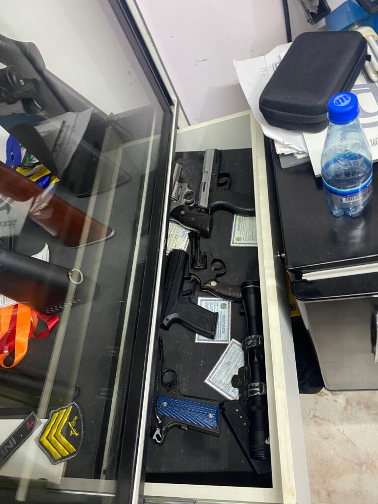 Os mandados foram cumpridos em sete endereços ligados ao suspeito de ser o mandante do crime, incluindo dois estandes de tiro na capital amazonense. Uma grande quantidade de armas foi apreendida — muitas em quantidade superior ao permitido por lei — como pistolas, revólveres, espingardas, fuzis e munições. Entre os objetos apreendidos está parte de uma arma que acredita-se ter sido usada no crime.