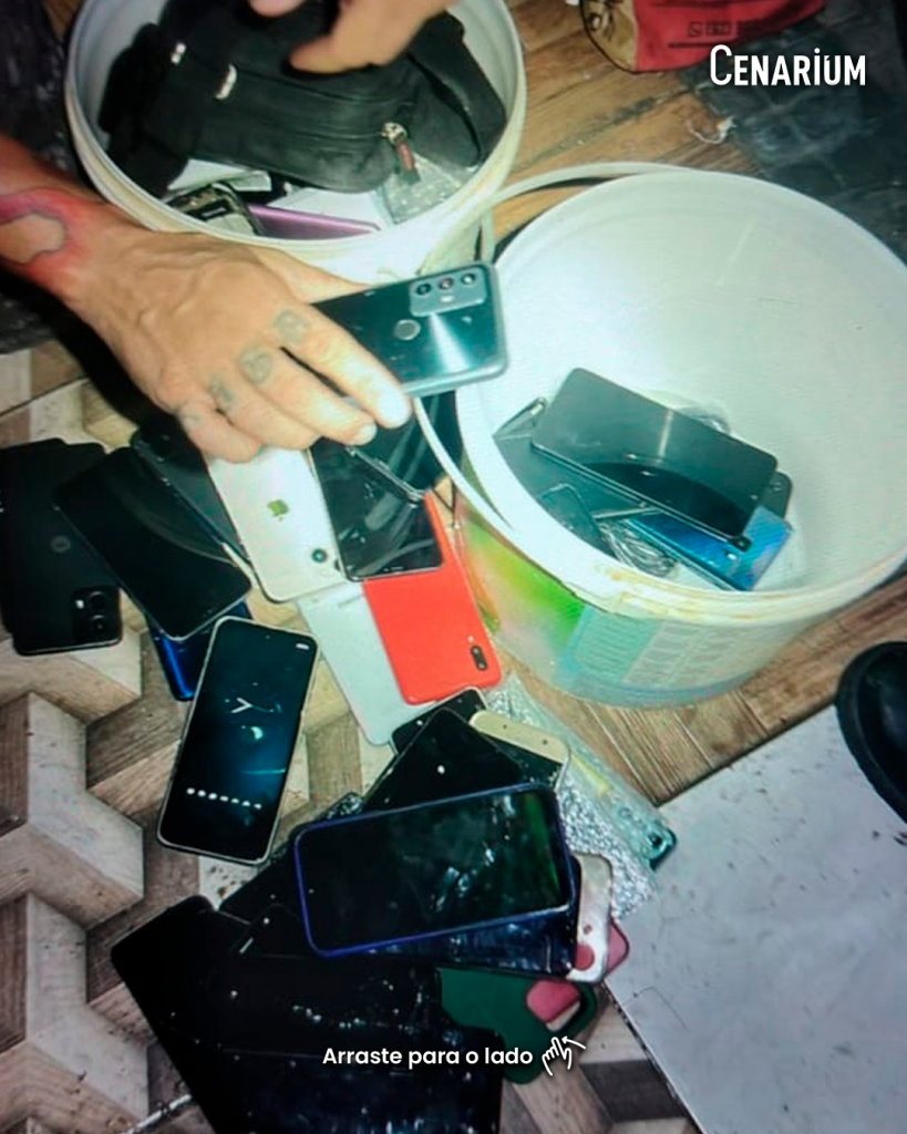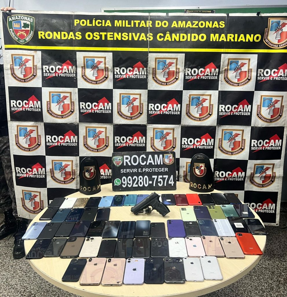 Durante a revista pessoal em dois dos suspeitos, os policiais militares encontraram parte dos aparelhos celulares que foram apreendidos, além de uma arma de fogo que era utilizada nos assaltos, segundo a PM-AM. Após receberem voz de prisão, a dupla indicou aos agentes das forças de segurança outro local onde estavam mais aparelhos roubados.