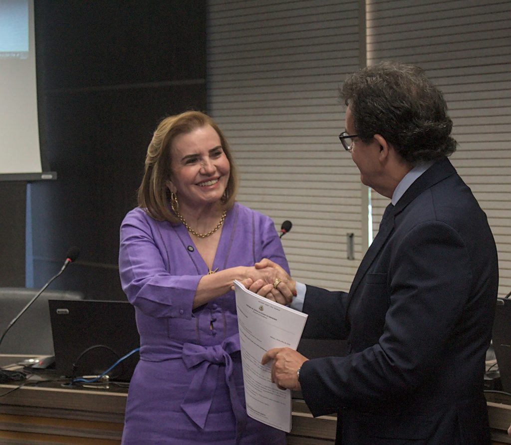 Na mesa, estavam presentes o vice-presidente do TCE-AM, desembargador Airton Gentil, o procurador de Justiça Mauro Veras Bezerra, além do procurador regional rleitoral Rafael Rocha e a juíza Careen Aguiar.