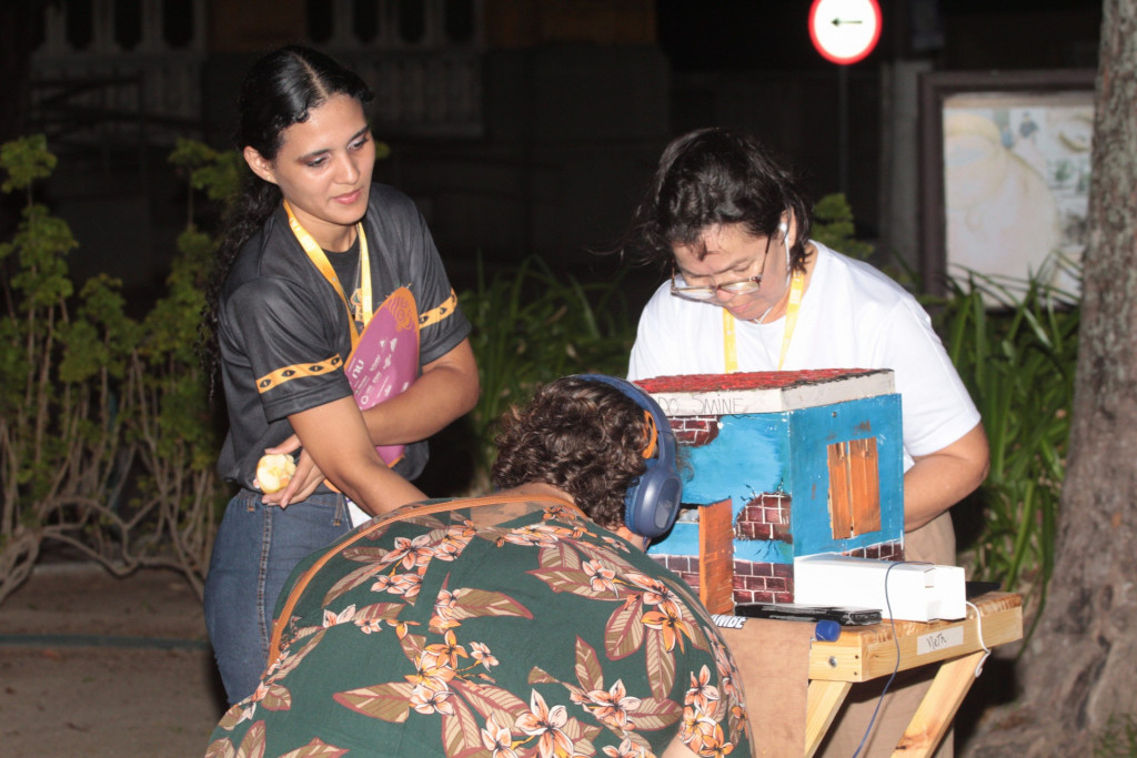 Após o lançamento na parte externa do Museu da Cidade, os participantes e pessoas presentes nos arredores do Paço da Liberdade participaram da mostra com dez casas de espetáculo (cabines) lambe-lambe, com a participação da paulista Lourdes Maria Rosa, que trouxe sua experiência de 13 anos como artista e pesquisadora de teatro lambe-lambe para compartilhar com a população amazonense.