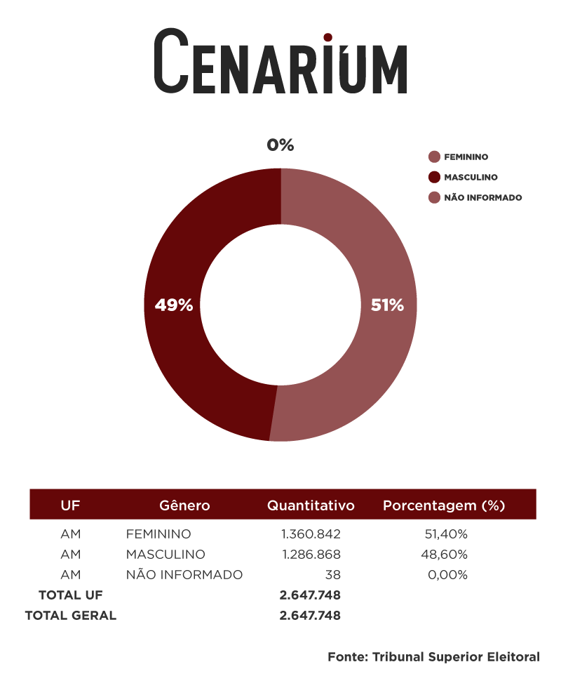 Segundo as estatísticas de eleitorado do site do Tribunal Superior Eleitoral (TSE), o público feminino do Amazonas apto a votar ainda é maioria e está representado por, pelo menos, 1.360.842 mulheres, um percentual de 51%. Ainda assim, o Estado não possui representatividade na política para pautas pertinentes a esse público.