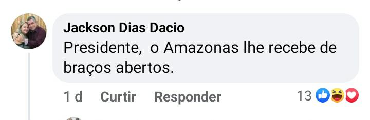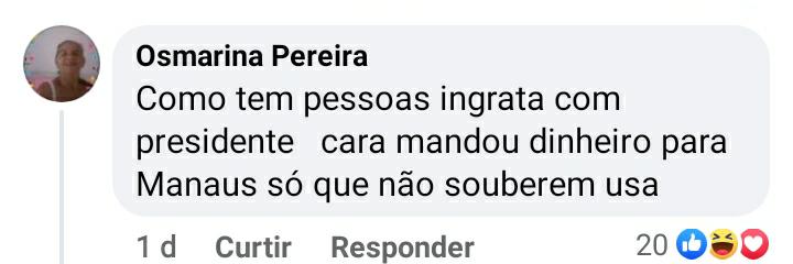 Por outro lado, alguns internautas parabenizaram o presidente e elogiaram Bolsonaro. “Como tem pessoas ingratas com o presidente. O cara mandou dinheiro para Manaus, só que não souberam usar”, disse uma pessoa, no Facebook.