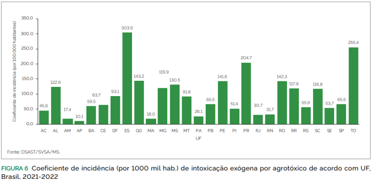 MANAUS – O Tocantins ocupa o segundo lugar no ranking de casos de intoxicação por agrotóxico, segundo o boletim epidemiológico “Vigilância em saúde de populações expostas a agrotóxicos no Brasil, entre 2020 e 2022“, do Ministério da Saúde divulgado neste mês. Foram identificados cerca de 255 casos para cada 1 mil habitantes.