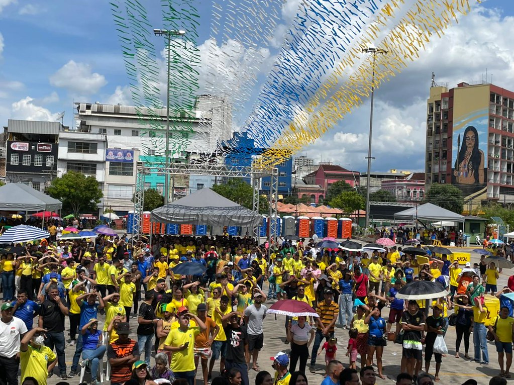 A estrutura montada às margens do Rio Negro conta com atrações musicais nos intervalos para embalar o clima animado de quem saiu de casa para acompanhar mais um capítulo da corrida da seleção pelo hexacampeonato.