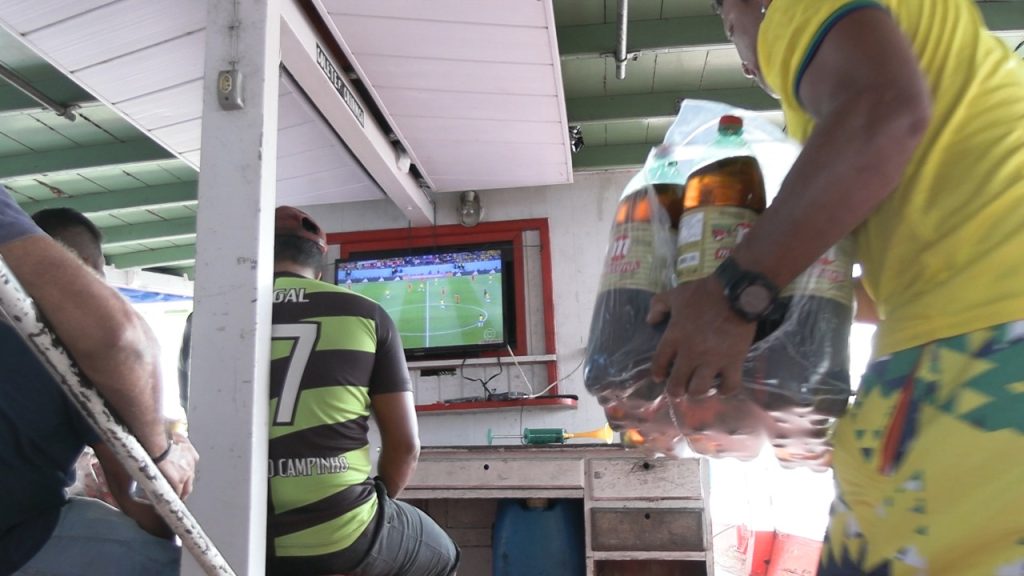 Mesmo ansiosos para o resultado, os tripulantes do Barco Capitão Vivaldo 8 não paravam de abastecer a embarcação. Entre um carregamento e outro, os marujos olhavam os lances da partida que congelou no zero a zero e até teve um gol anulado.