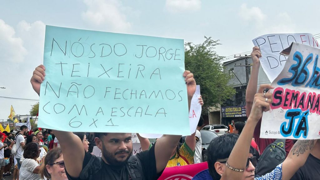 MANAUS (AM) – Trabalhadores, estudantes, movimentos sindicais e de esquerda se reuniram nesta sexta-feira, 15, em diversas partes do Brasil para manifestar apoio ao fim da escala 6×1. Manaus também aderiu ao ato, com pessoas percorrendo a Avenida Autaz Mirim, na Zona Leste, pedindo pela redução da jornada de trabalho.