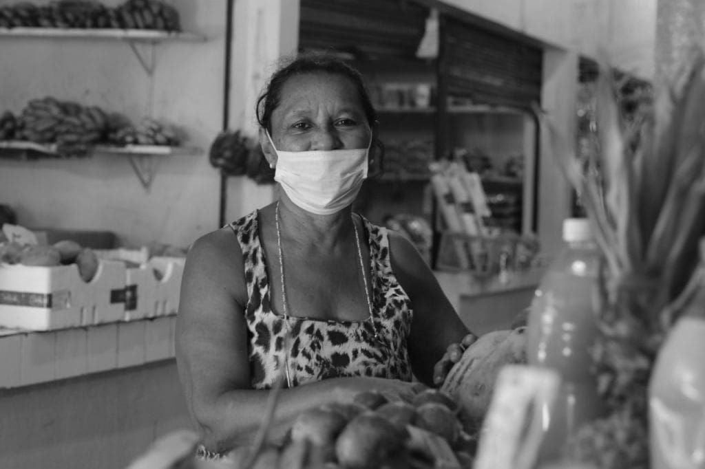 A feirante Rosa Pinheiro, 65 anos, trabalha no mercado Dorval Porto, no bairro Nossa Sra Das Graças, Zona Sul de Manaus, há 60 anos. “Quando na vida pensávamos que o mundo ia parar? Voltei a trabalhar há duas semanas. Como eu e meu marido somos do grupo de risco, passamos quatro meses, sem trabalhar. A pandemia só não nos afetou profundamente porque tínhamos uma reserva no banco e o salário da aposentadoria do meu marido”, afirma a feirante.