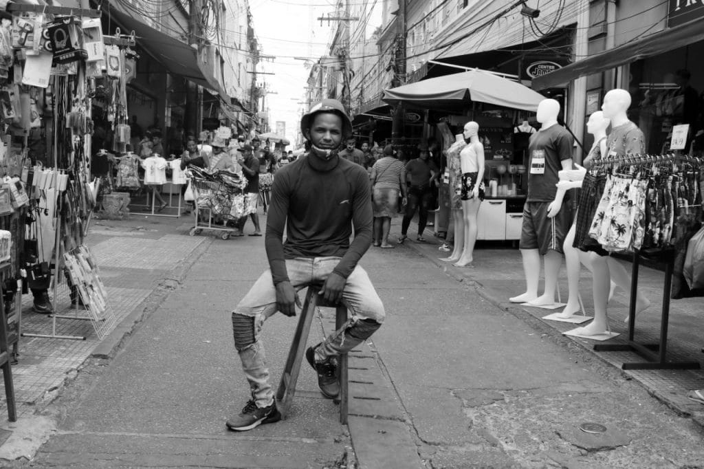 Não muito distante dali, encontramos o ambulante Arilson Abreu Cavalcante, 46 anos, que há 28 anos comanda uma barraca de óculos e bonés, no centro da cidade. Seguindo os protocolos de segurança, por conta da pandemia, obrigou o comércio não essencial a fechar as portas. Foram quase quatro meses sem trabalhar, afirma Arilson, que antes da pandemia faturava cerca de R$ 10 mil por mês, tinha cinco funcionários e viu sua renda despencar para R$ 600,00, no primeiro mês após o fechamento do comércio.