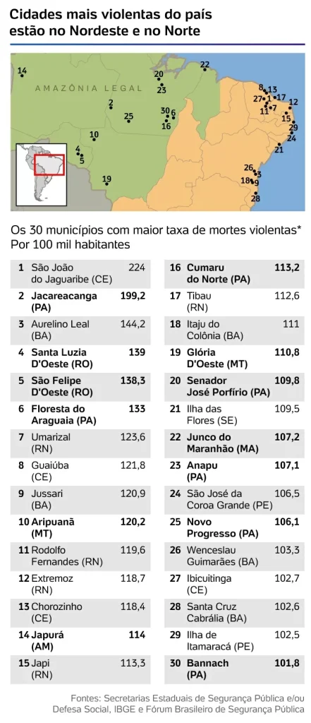 Confira a lista dos 30 municípios mais violentos do País: