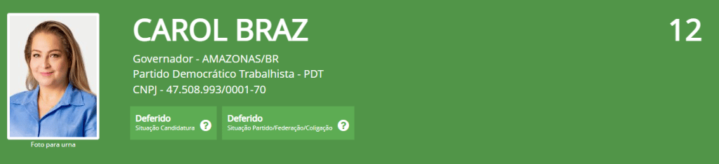 Até o momento, os únicos postulantes ao governo que tiveram o pedido de candidaturas e as documentações dos partidos ou coligações deferido pela Justiça Eleitoral foram Carol Braz (PDT) e Ricardo Nicolau (Solidariedade), que compõe a coligação “Nós, o povo”, formada por Solidariedade e o Partido Socialista Brasileiro (PSB).