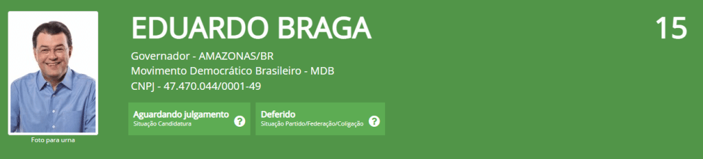 Na mesma situação, está o senador e candidato a governador do Amazonas Eduardo Braga (MDB) que teve sua coligação “Em defesa pela vida“ aprovada pelo TSE, mas ainda não teve ainda sua candidatura apreciada pela Justiça Eleitoral.