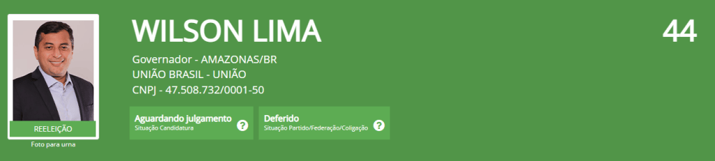 MANAUS – A coligação “Aqui é trabalho“, encabeçada pelo candidato à reeleição e governador do Amazonas, Wilson Lima (União), foi deferida após o julgamento das documentações realizado pela Justiça Eleitoral, segundo consta na plataforma Divulgação de Candidaturas e Contas Eleitorais do Tribunal Superior Eleitoral (TSE).