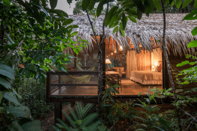 Contudo, dormir ouvindo os sons da mata e sentindo a refrescante brisa da selva faz o visitante sentir parte dessa gigantesca natureza que é a floresta Amazônica.