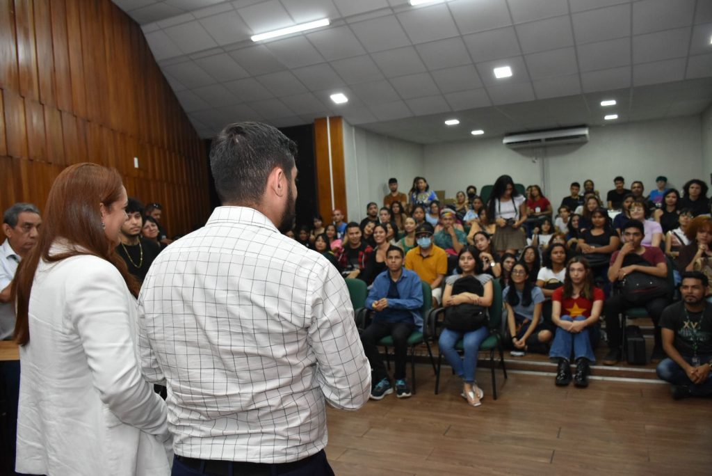 Na sequência, Zogahib deu as boas-vindas aos calouros da Escola Superior de Artes e Turismo (Esat) ao lado da vice-reitora, professora doutora Kátia Couceiro. “É com muito prazer que estou aqui com vocês. Foi neste lugar, há 22 anos, que iniciei meus estudos na UEA, no curso de Administração. Saibam que vocês têm um excelente quadro de professores e tudo para brilharem profissionalmente. Contem sempre comigo e com toda a gestão superior”, ressaltou.