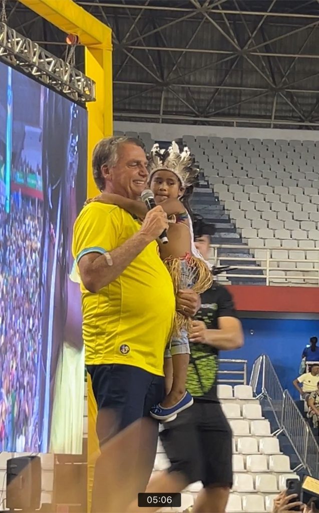 No decorrer do evento político de Neto, Bolsonaro usou parte de sua fala para discorrer sobre povos indígenas. O ex-presidente ergueu nos braços uma criança preta com vestes indígenas e falou que a sociedade não pode permitir que crianças permaneçam isoladas em comunidades indígenas.