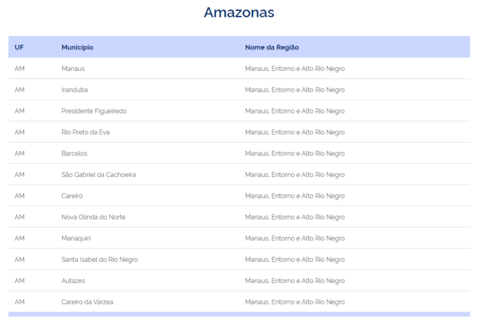 Os 12 municípios do Amazonas que irão receber a vacina contra a dengue são: Manaus, Iranduba, Presidente Figueiredo, Rio Preto da Eva, Barcelos, São Gabriel da Cachoeira, Careiro, Nova Olinda do Norte, Manaquiri, Santa Isabel do Rio Negro, Autazes e Careiro da Várzea, cidades onde identificaram o maior número de casos.