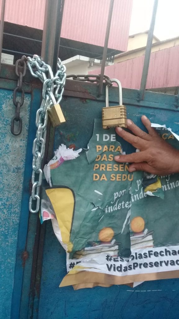 A ação do sindicato de colocar cadeados nos portões da escola era uma tentativa de impedir que os estudantes tivessem acesso às aulas. No Boletim de Ocorrência (BO) registrado pela Coordenadoria Distrital de Educação 1 (CDE), é relatada a “violação cometida contra alunos e servidores no dia 1º de setembro, quando foi negado o acesso às dependências da escola devido os portões estarem trancados com correntes e cadeados”.