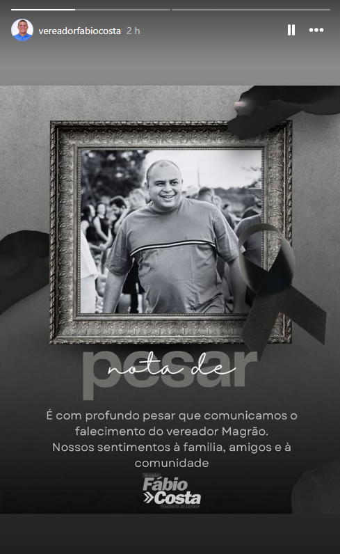 Por meio de nota, a Casa Legislativa manifestou pesar pelo falecimento do vereador Magrão e se solidarizou com familiares e amigos, além de decretar luto de três dias.