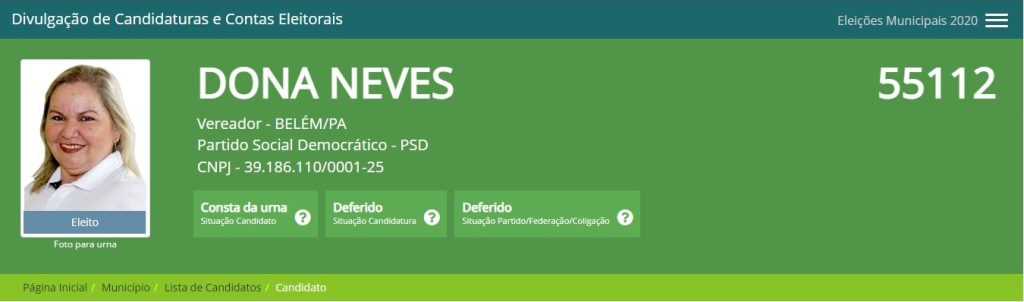 O órgão apontou que as irregularidades cometidas pelo partido anularam a votação obtida, ordenando o recálculo dos quocientes eleitoral e partidário. Isso resultou na cassação do mandato da vereadora Dona Neves. A vaga deve ficar com o pastor evangélico Paulo Queiroz, do MDB. Os diretórios municipais do Movimento Democrático Brasileiro (MDB), do Partido Liberal (PL) e da União Brasil (União) ajuizaram a ação, alegando fraude à cota de gênero no diretório municipal do PSD para o cargo de vereador no município de Belém.