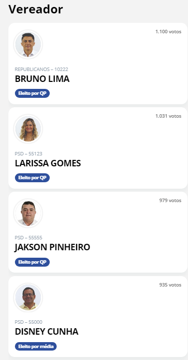 No pleito, os dois garantiram a reeleição. Larissa foi a segunda vereadora mais votada de Iranduba com 1.031 votos válidos, e Disney, por sua vez, foi o quarto com 935 votos.