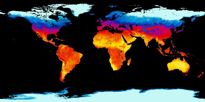 No quesito temperatura, a Nasa afirma que a temperatura se difere da aferição dos relatórios meteorológicos comuns, porque a terra aquece e resfria mais rapidamente do que o ar. As imagens do Modis, também exibem as médias mensais da superfície terrestre em graus Celsius.