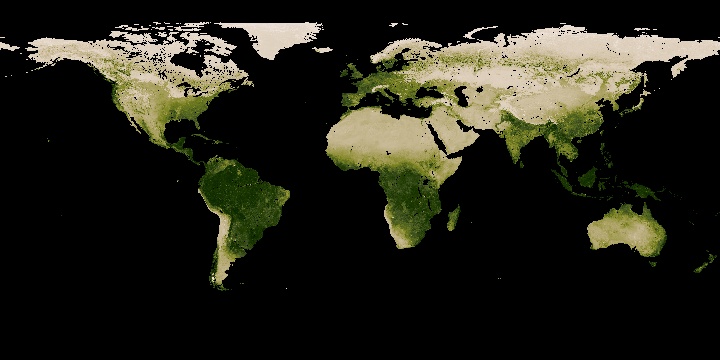 O padrão mais óbvio que os mapas mostram é o global: a vegetação é abundante ao redor do equador durante todo o ano, onde as temperaturas são altas. (Chuva e luz solar também são abundantes). Entre o equador e os pólos, o verde da vegetação aumenta e diminui a medida que as estações mudam e as temperaturas aumentam e diminuem.