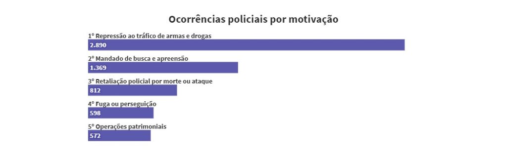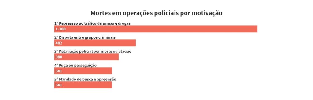 Não foram incluídas no levantamento todas as mortes por intervenção de agentes do Estado, apenas os casos em que foi possível atribuir a motivação da ocorrência com ao menos duas fontes diferentes de consulta. O estudo inclui óbitos de policiais e mortes em disputas entre facções rivais, que servem de motivação para operações policiais.