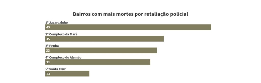 O estudo constatou ainda que 812 operações no período analisado foram desencadeadas por vingança — em média, uma morte a cada duas incursões policiais. Para se ter uma ideia, o índice de operações com morte motivadas por vingança mapeadas pelo estudo representam o dobro dos óbitos em cumprimentos de mandados de busca e apreensão.
