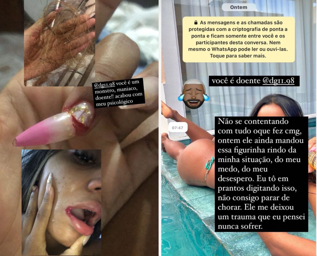 Ela diz ainda que registrou um Boletim de Ocorrência (BO) e fez exames de corpo de delito. Após o caso, DG ainda teria enviado mensagens zombando da situação que a deixou amedrontada.