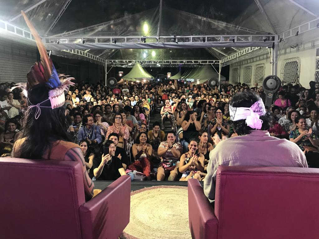 Aguardado e festejado pelo público, o escritor Ailton Krenak saudou os presentes. “Talvez estejamos hoje aqui mais do que saudando a literatura, nós estamos aqui expressando o nosso desejo de vida, a arte é estar vivo. Estou muito honrado com a presença da Vanda e do João Paulo. Somos três pensadores de diferentes etnias que, juntos, expressam o pensamento dos povos originários”, observou. Na sequência, foi a vez da ativista Vanda Witoto tecer críticas sobre o uso da expressão “o futuro é ancestral”. “Quando a gente fala sobre o futuro ancestral, eu tenho algumas incomodações: eu não gosto de pensar esse futuro ancestral quando esse País nega o seu passado ancestral, se eu nego esse passado, eu não tenho perspectiva de futuro”, disparou.