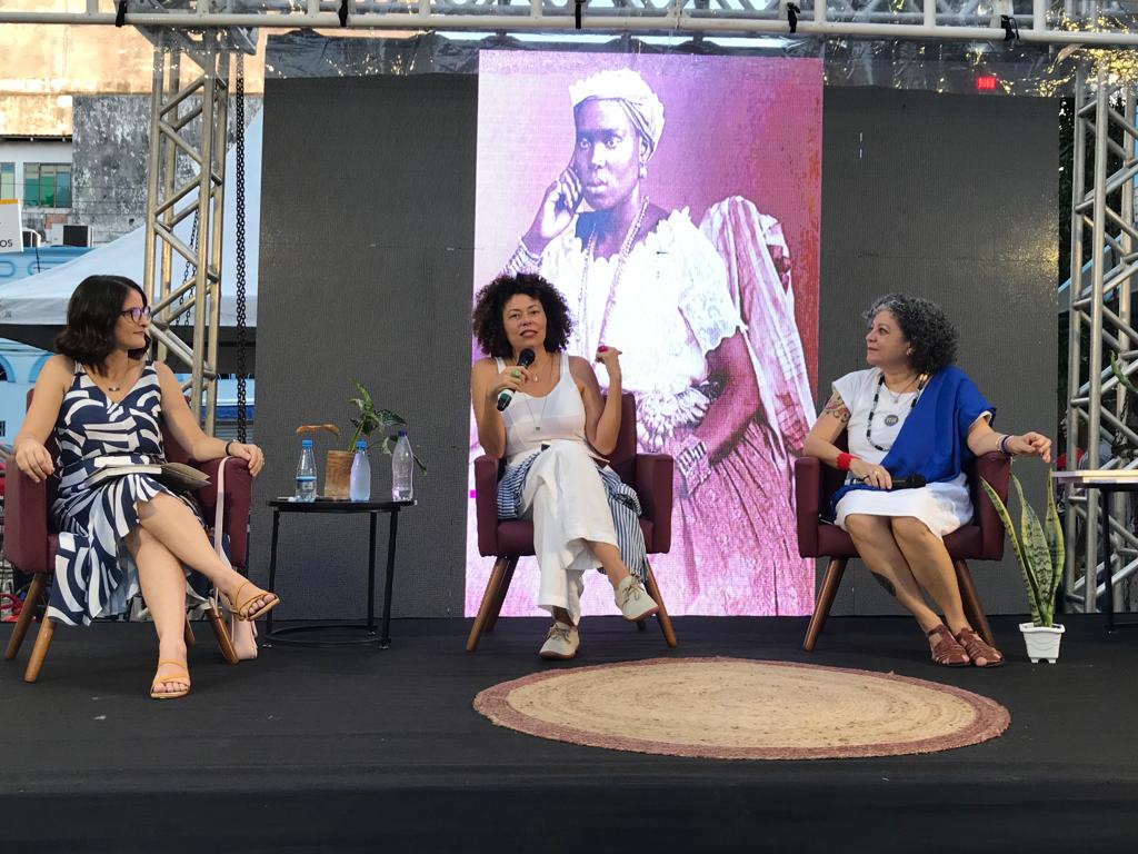 Abrindo as falas, as escritoras Luciany Aparecida e Patrícia Melo discorreram sobre o papel de homens e mulheres negras do Brasil e suas contribuições literárias. “Estou muito feliz de estar aqui nessa rua, próxima a uma encruzilhada, que tem uma simbologia única, e venho aqui com uma missão difícil que é falar de negritude e da participação de mulheres negras na literatura, que isso não é uma tarefa fácil no Brasil”, declarou Luciany Aparecida. Em seguida, foi a vez da historiadora amazonense Patrícia Melo dar sua contribuição: “Não é uma tarefa simples, reconstituir e colocar na frente da cena e dar protagonismo a negros e indígenas na história do Amazonas e da Amazônia”’, observou.