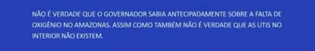 “(…) Não é verdade que o governador sabia, antecipadamente, sobre a falta de oxigênio no Amazonas. Assim como também não é verdade que UTIs no interior não existem”, informa um trecho da nota que também destaca a liderança de Wilson Lima e irresponsabilidade quanto à propagação de falsas informações cometidas por Braga durante a entrevista na TV.