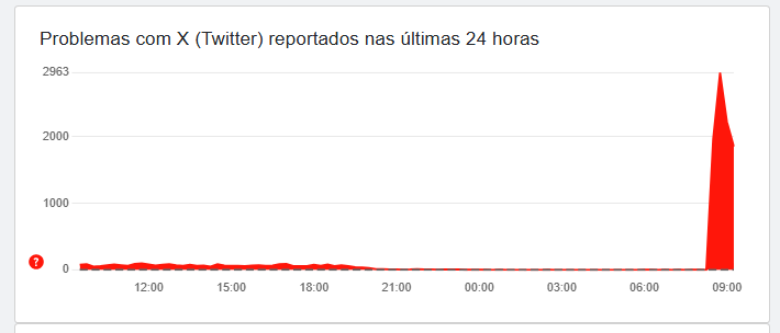 Na versão brasileira do site Downdetector, que monitora reclamações sobre falhas em plataformas na internet, o X/Twitter registrou mais de 2,9 mil notificações por volta das 09h45 (horário de Brasília).